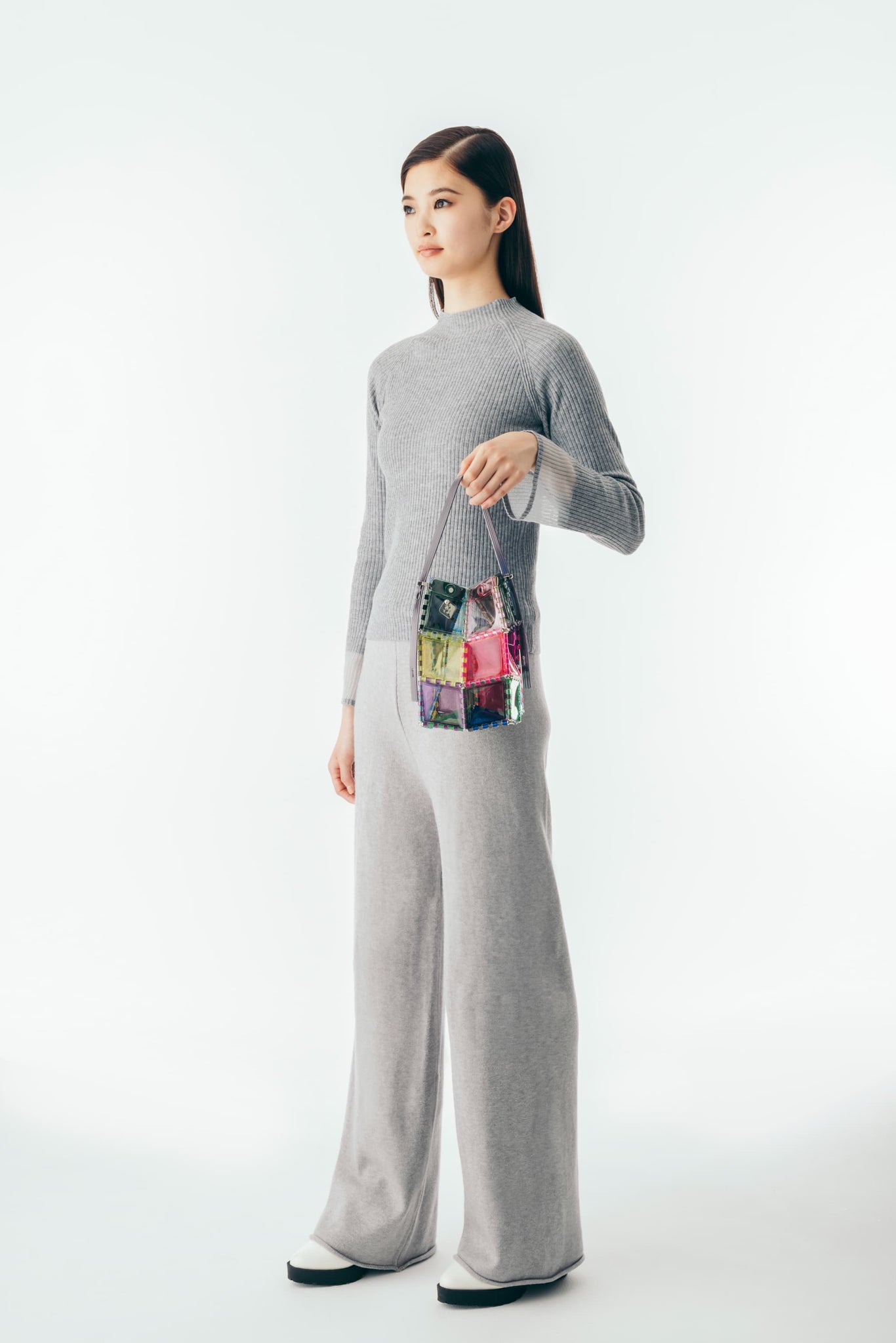 菱形ピースを組み合わせることで、造形的な形状を生み出した新たなバッグです「PENSÉES I」は、口元が自然と折り畳むように閉まり、巾着を思わせる仕様で開閉がしやすいのが特徴。