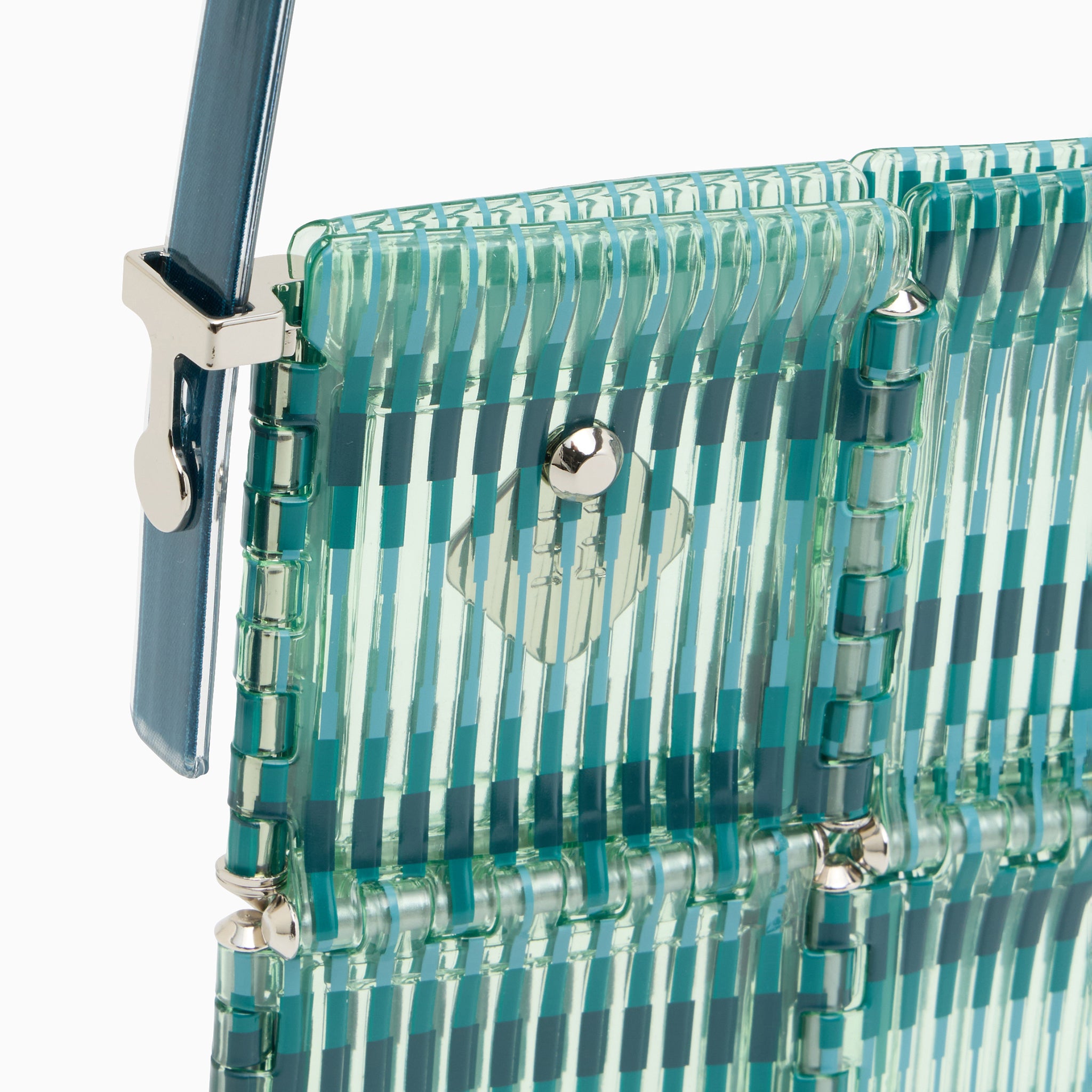 トーナルバージョンを軽やかなPOCKETバッグに落とし込み、凹凸ある質感や幾何学構造、同系色の穏やかな色彩で静かな奥行きを表現。シルクスクリーンとエンボス加工が繊細なリズムを生み、スマートフォンや小物をすっきり収納できる、現代生活に寄り添う洗練されたコンパクトバッグです。