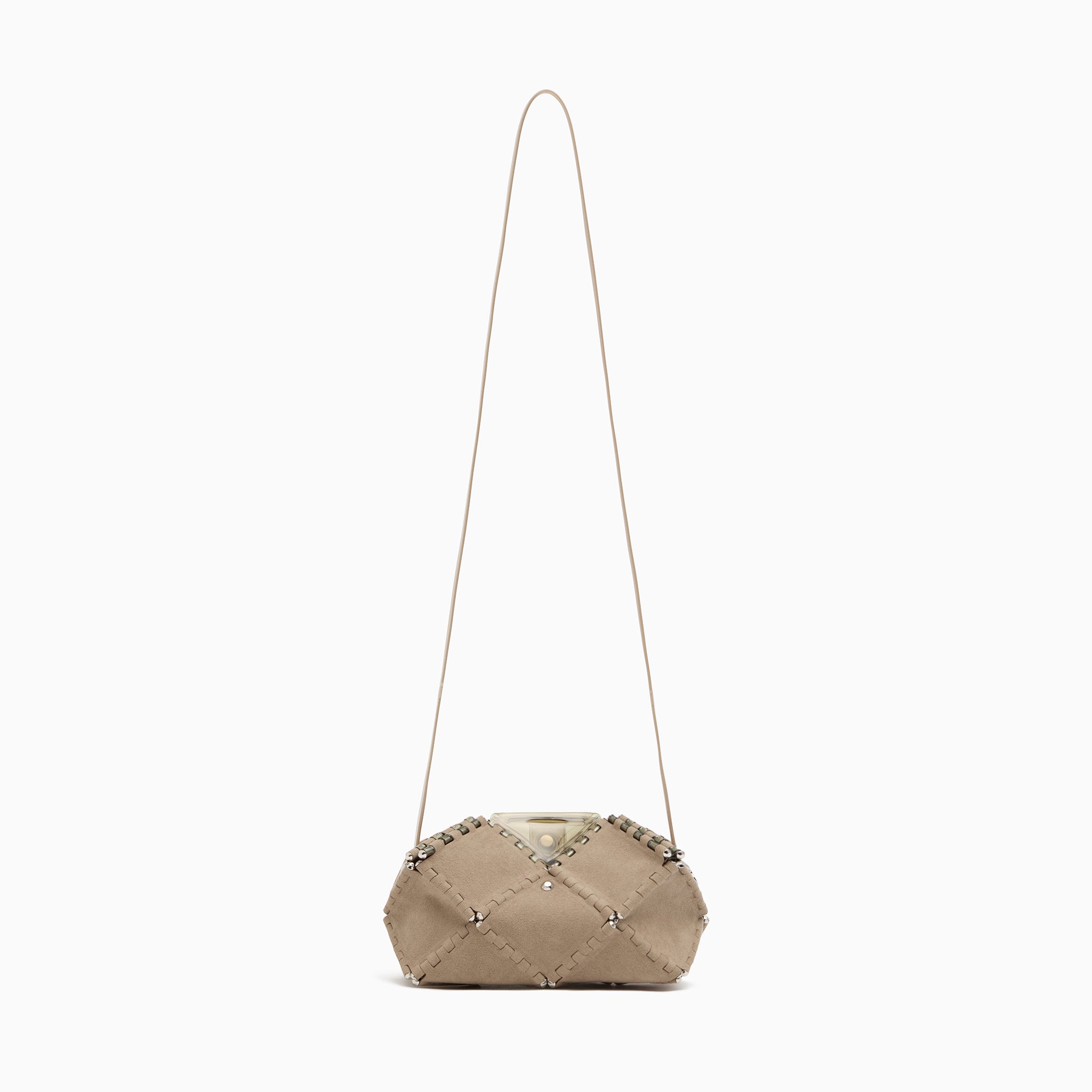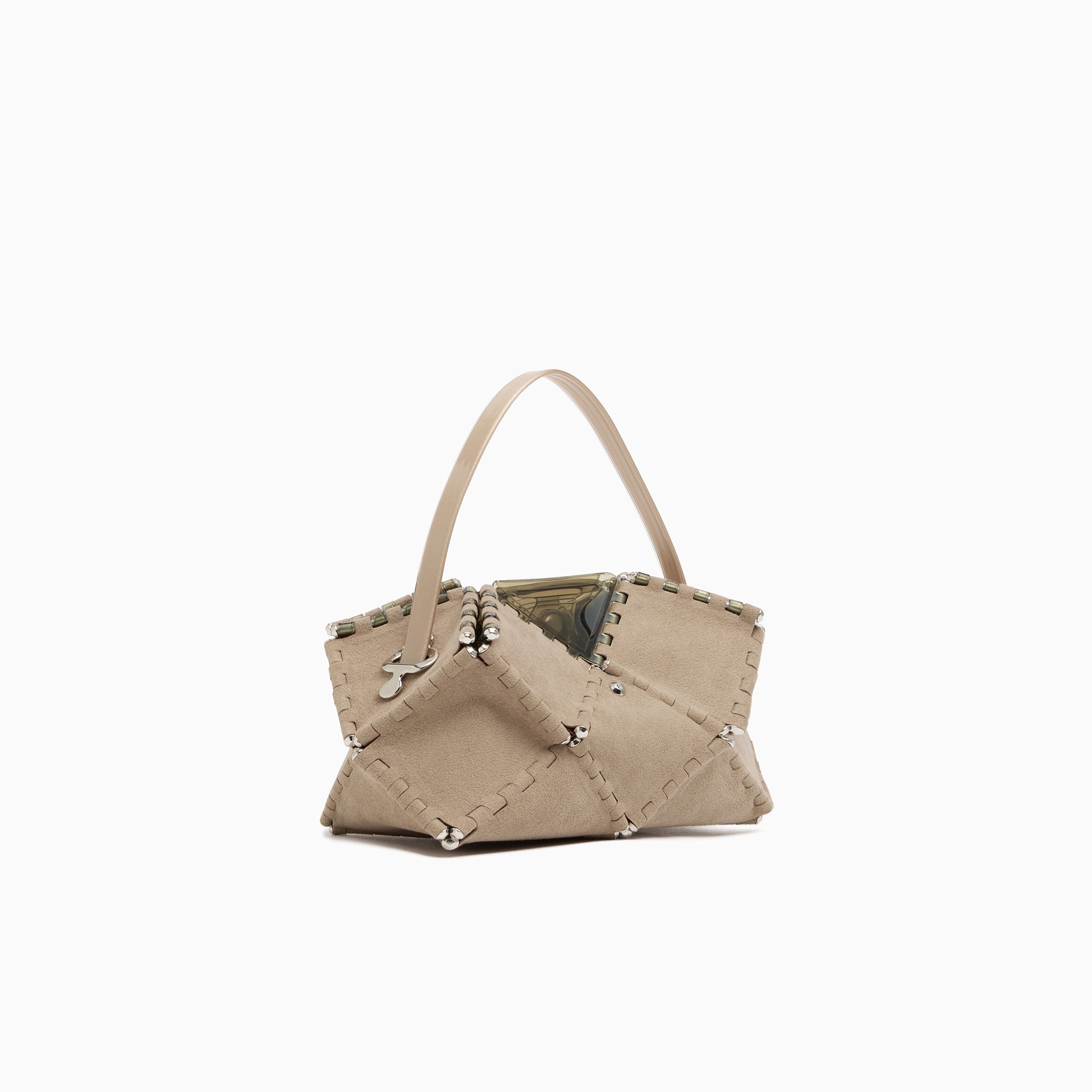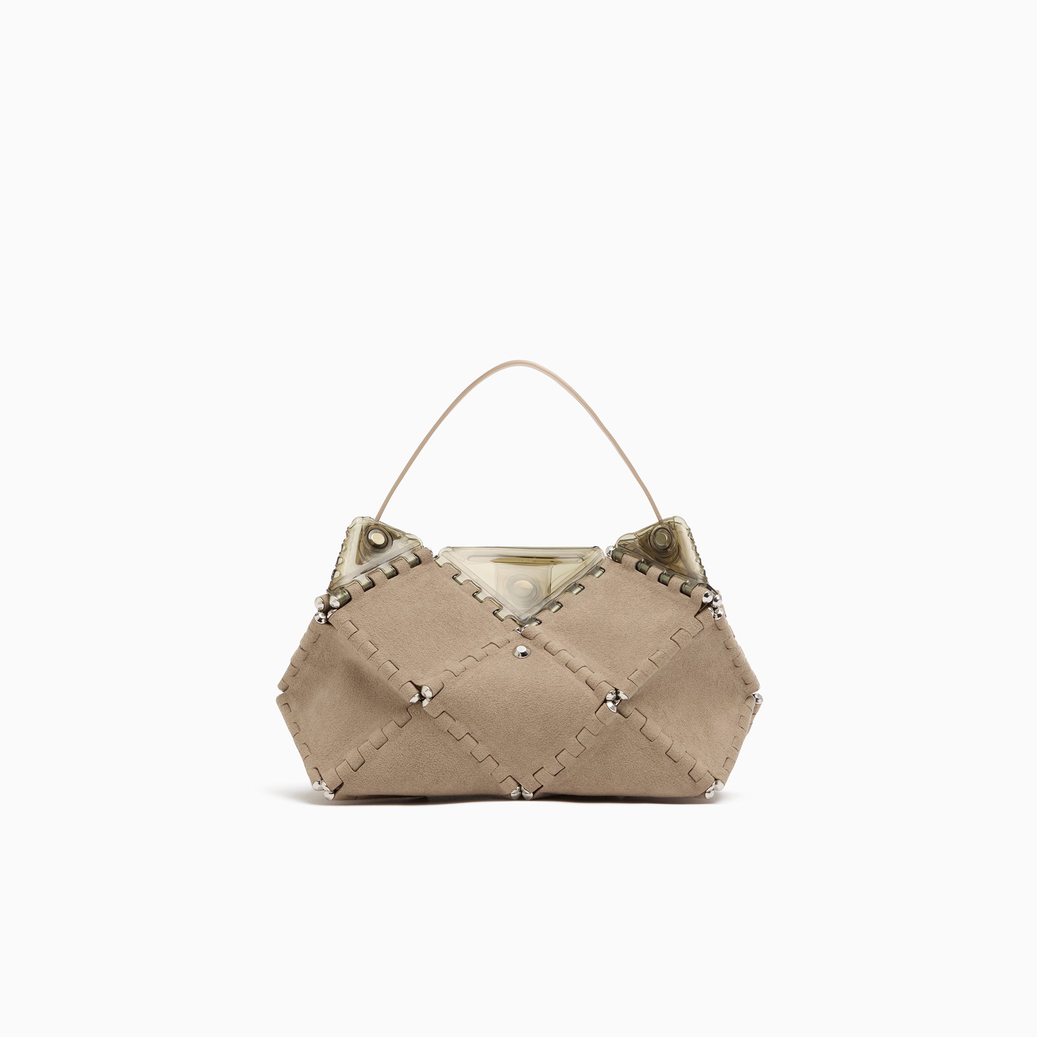 幾何学的なフォルムは、アートピースのような存在感を放ち、持つだけでコーディネートの主役に。