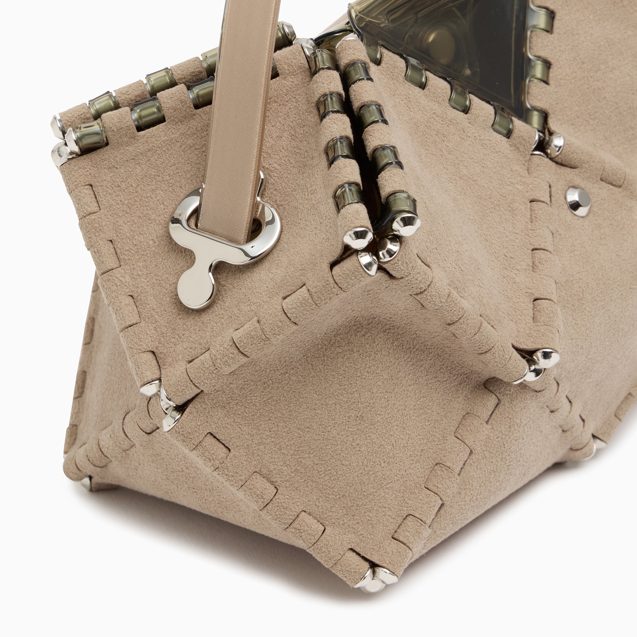【NEOSUEDE(ネオスエード)シリーズ】人工スエード×PVCの異素材ミックスで魅せる、次世代のモードバッグ繊細な質感の人工スエードと、透明感のあるPVCパーツを組み合わせた「NEOSUEDE」シリーズが登場。柔らかくマットなスエードと、シャープで光を反射するPVCのコントラストが、唯一無二の立体感を生み出します。