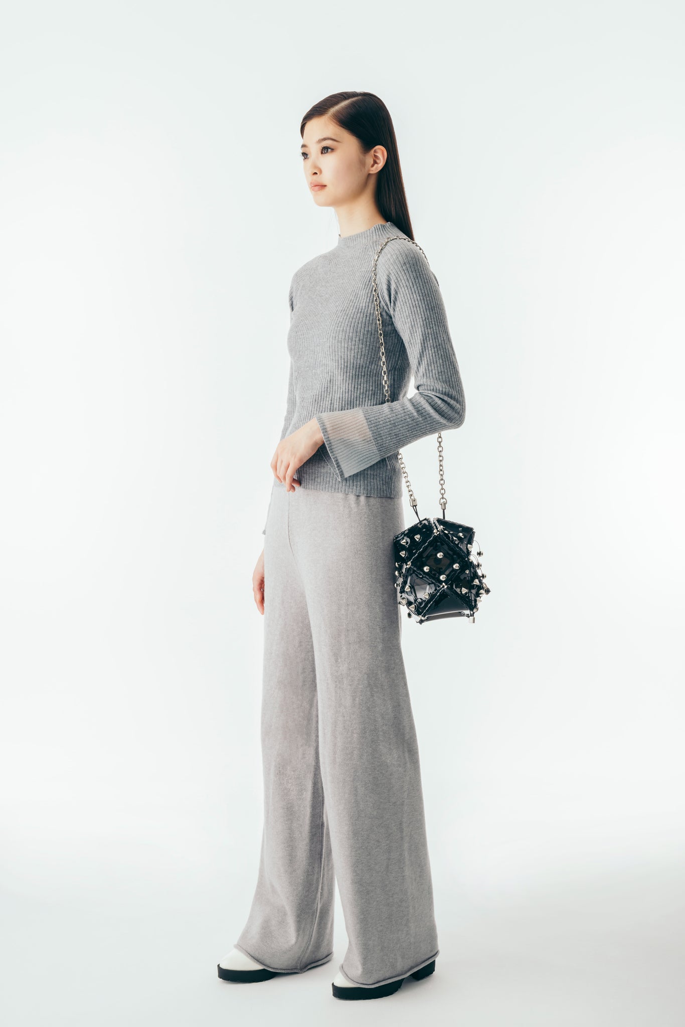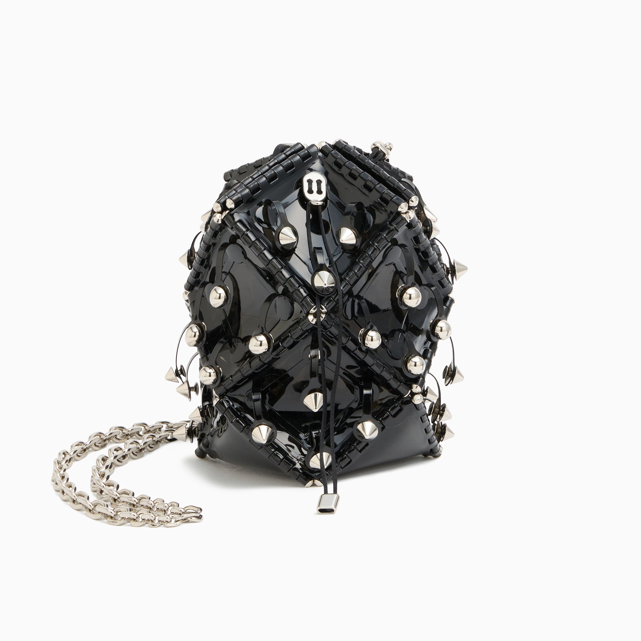 朝露がそっと葉先を滑り落ちる——そんな一瞬の儚さを閉じ込めた、アートピースのようなバッグ。 艶やかなPVCのボディにあしらわれた銀色のスタッズは、揺れるたびに光を反射し、雫のようにきらめきながら揺れ動きます。ファッションにアートの視点をプラスし、スタイリングに華やぎを添えるアイテムです。