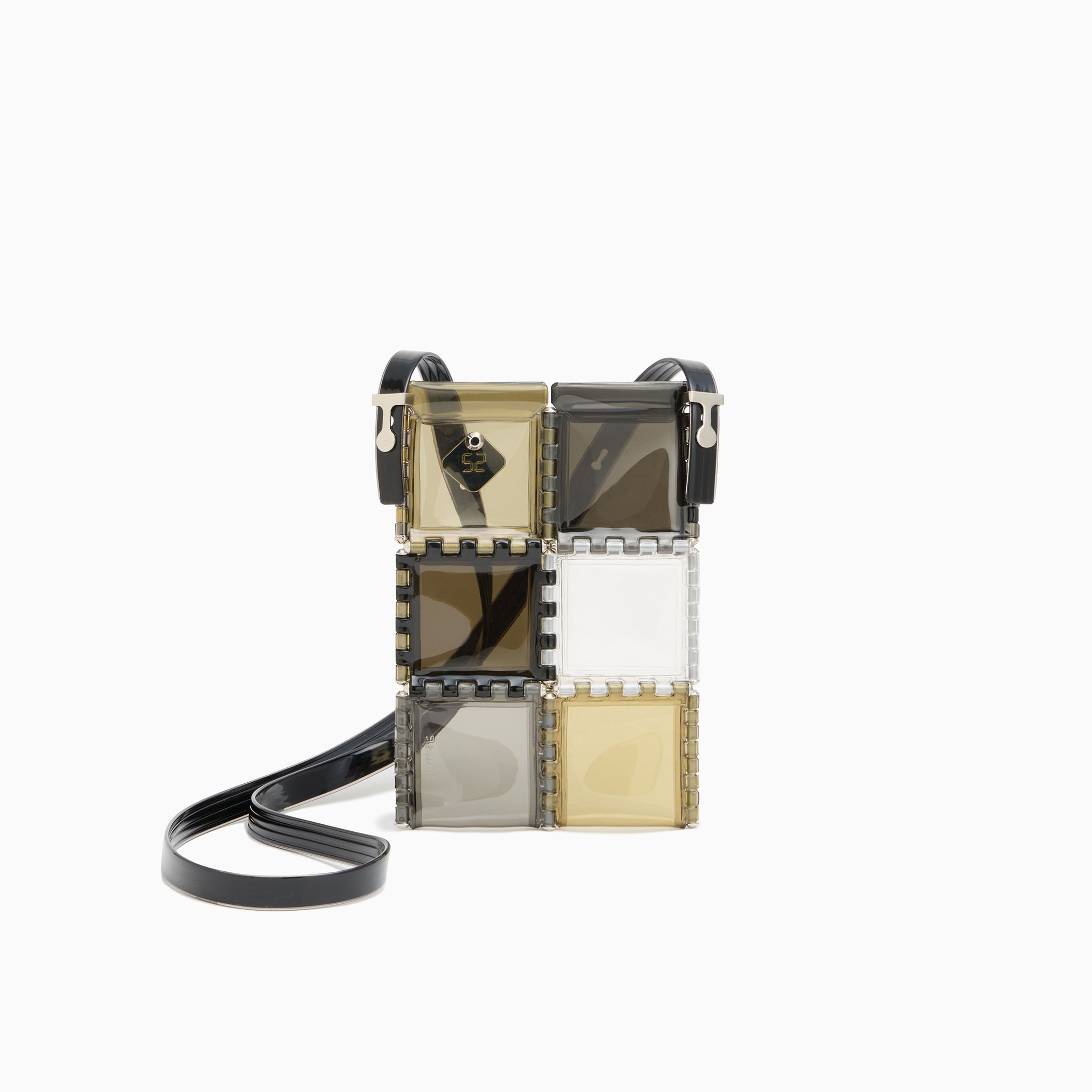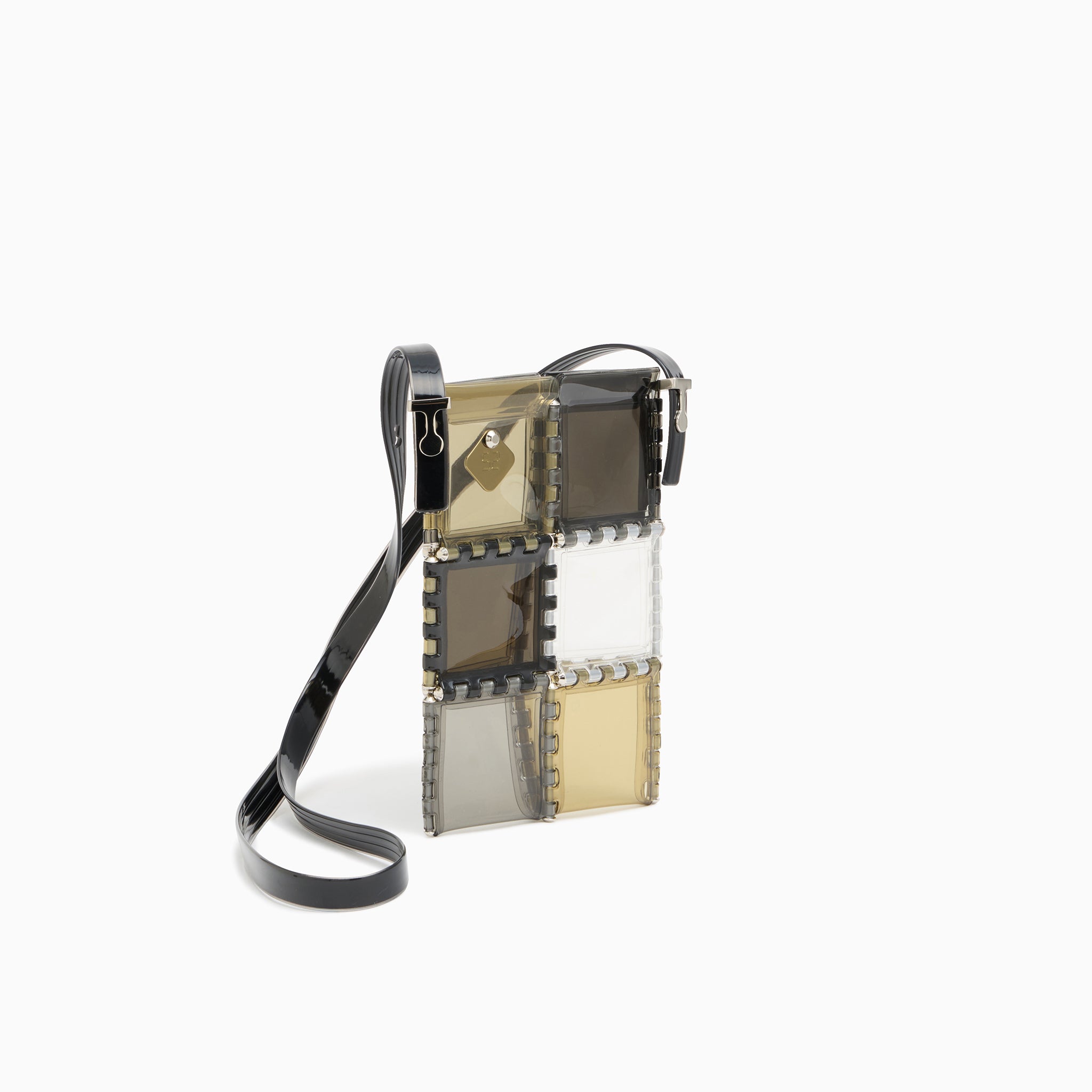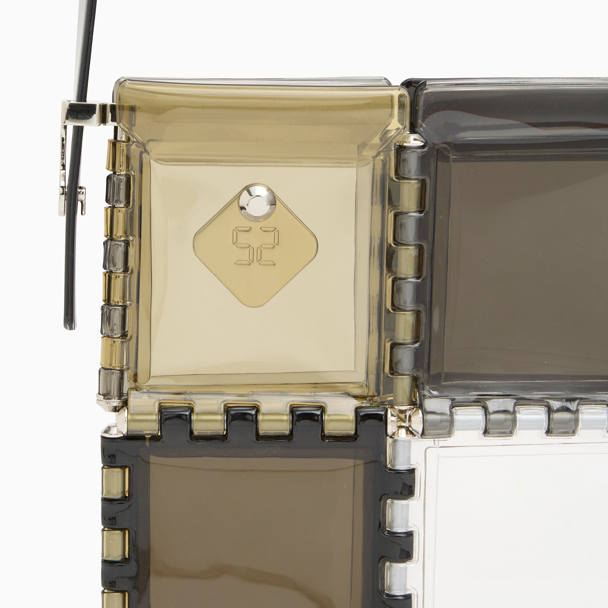 透明感のあるスモーキーグレーのPVC素材に、立体的なダイヤ型モチーフがリズミカルに並んだ独自のパターン。アーティスティックでありながら洗練された印象を与えます。ハンドバッグとしてもショルダーとしても使える3WAY仕様。用途や気分で持ち方を変えられます。洗練された配色:スモークトーンのモノトラルカラーで構成されており、どんな装いにもモードなアクセントをプラス。