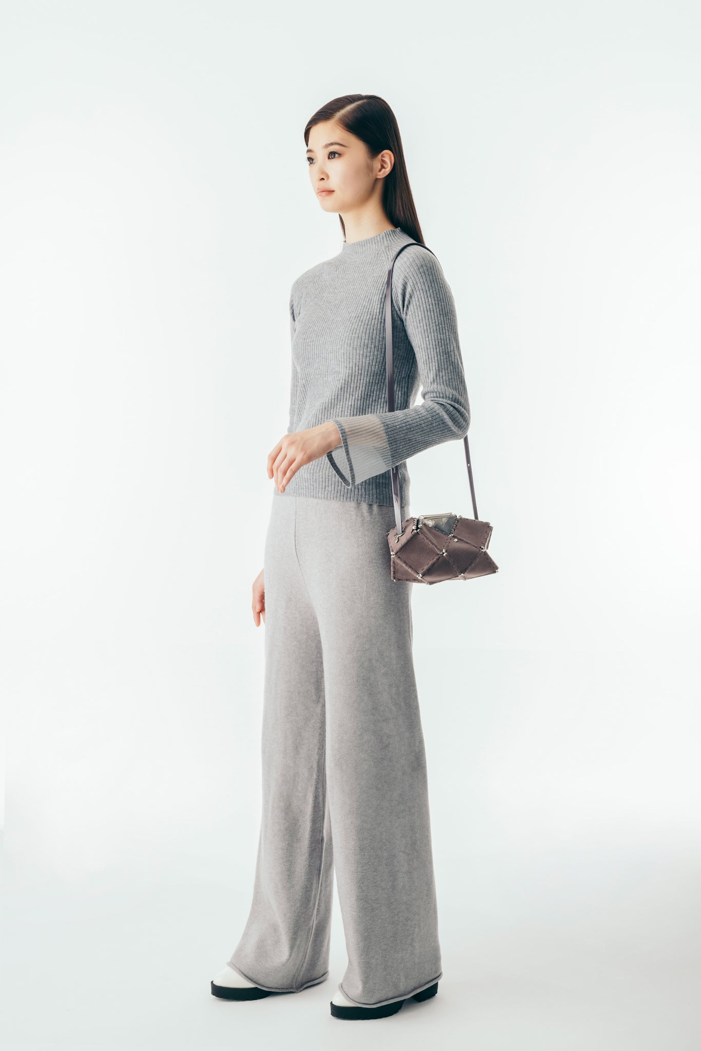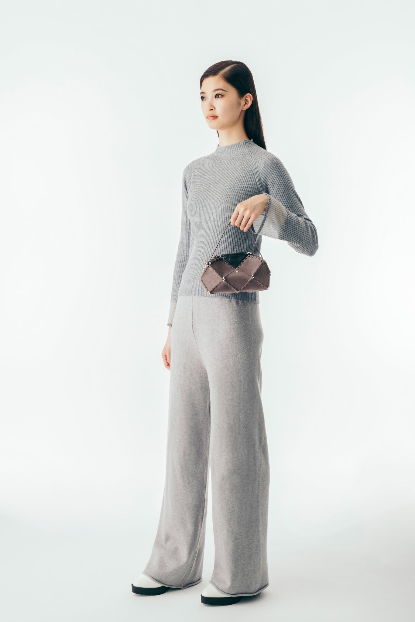 幾何学的なフォルムは、アートピースのような存在感を放ち、持つだけでコーディネートの主役に。