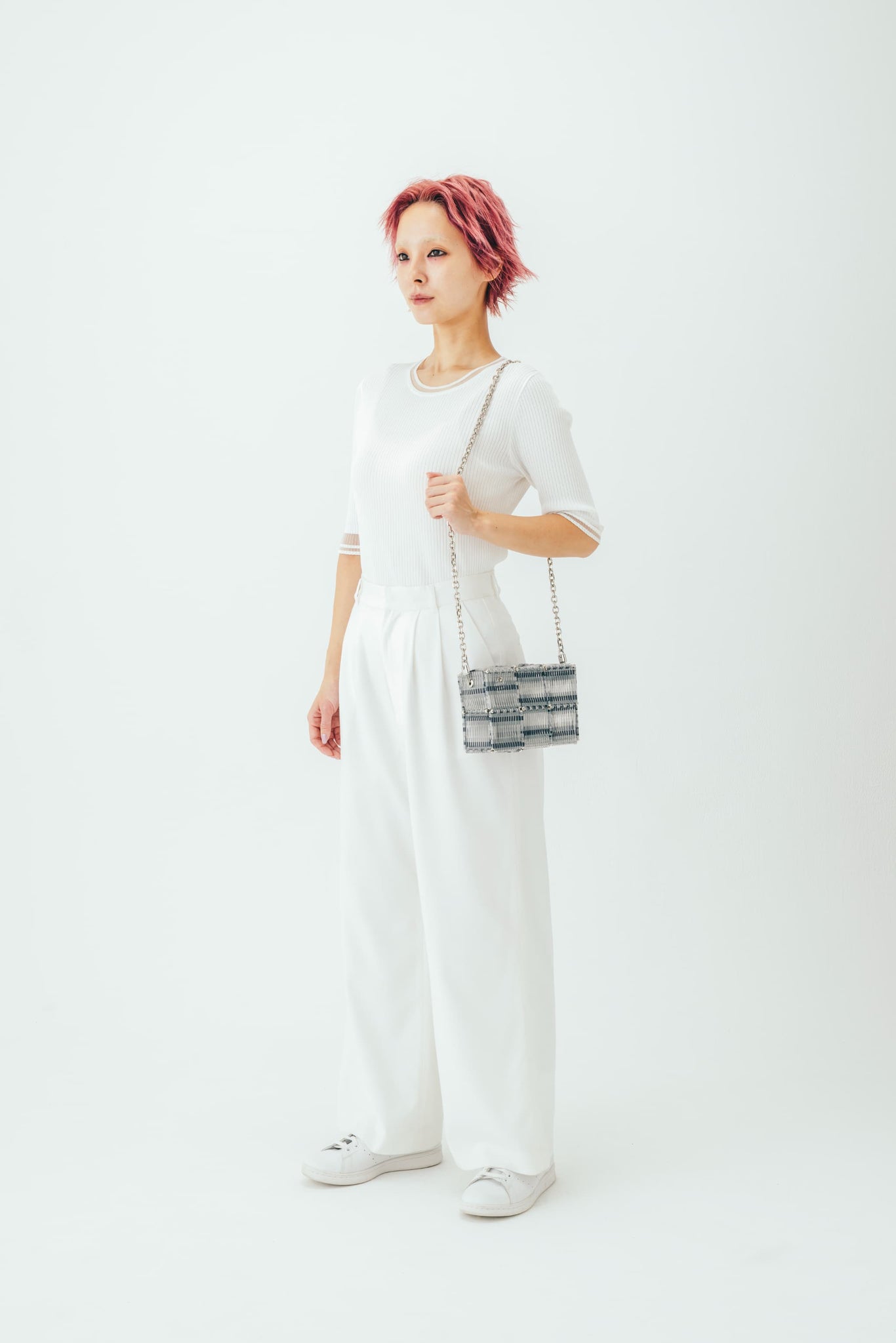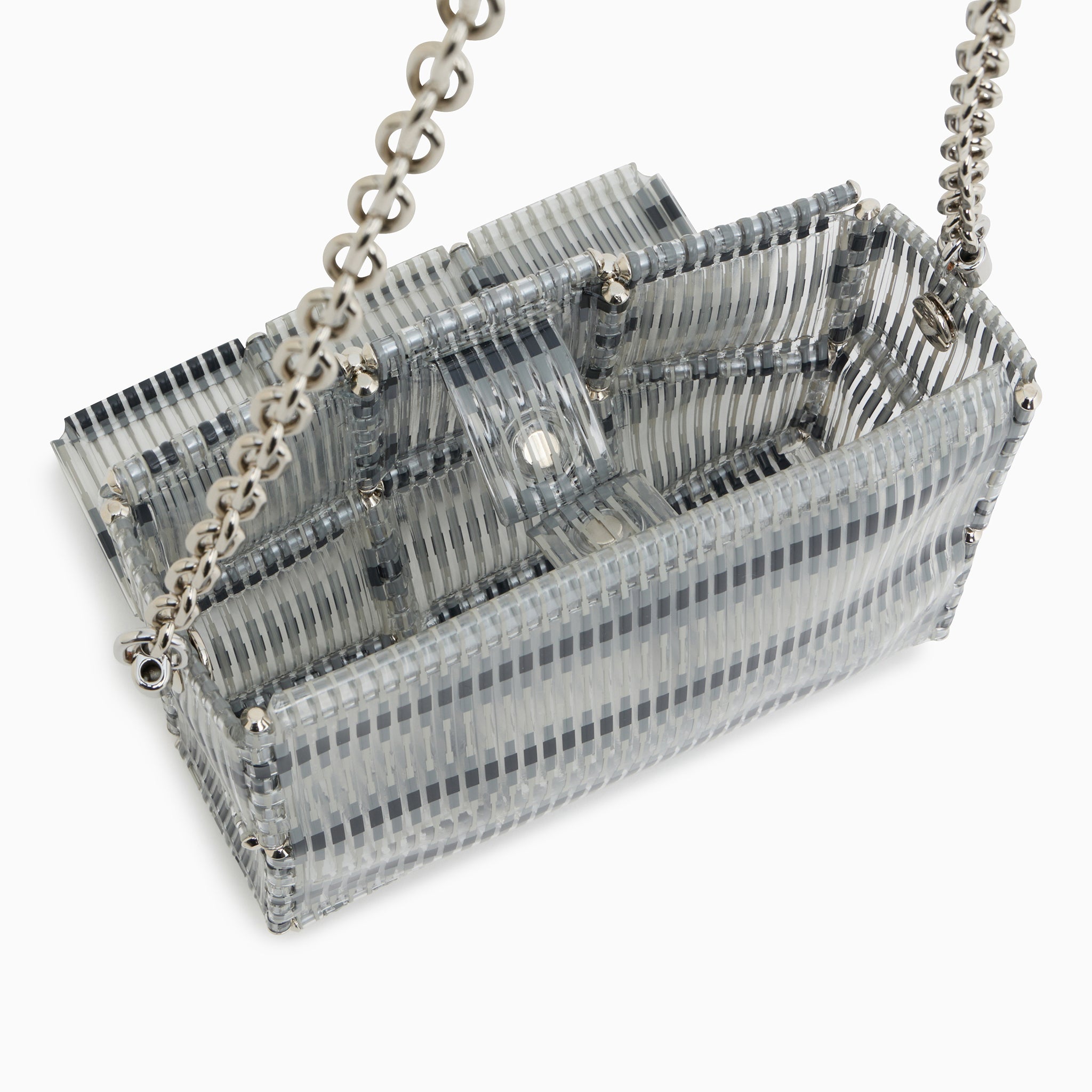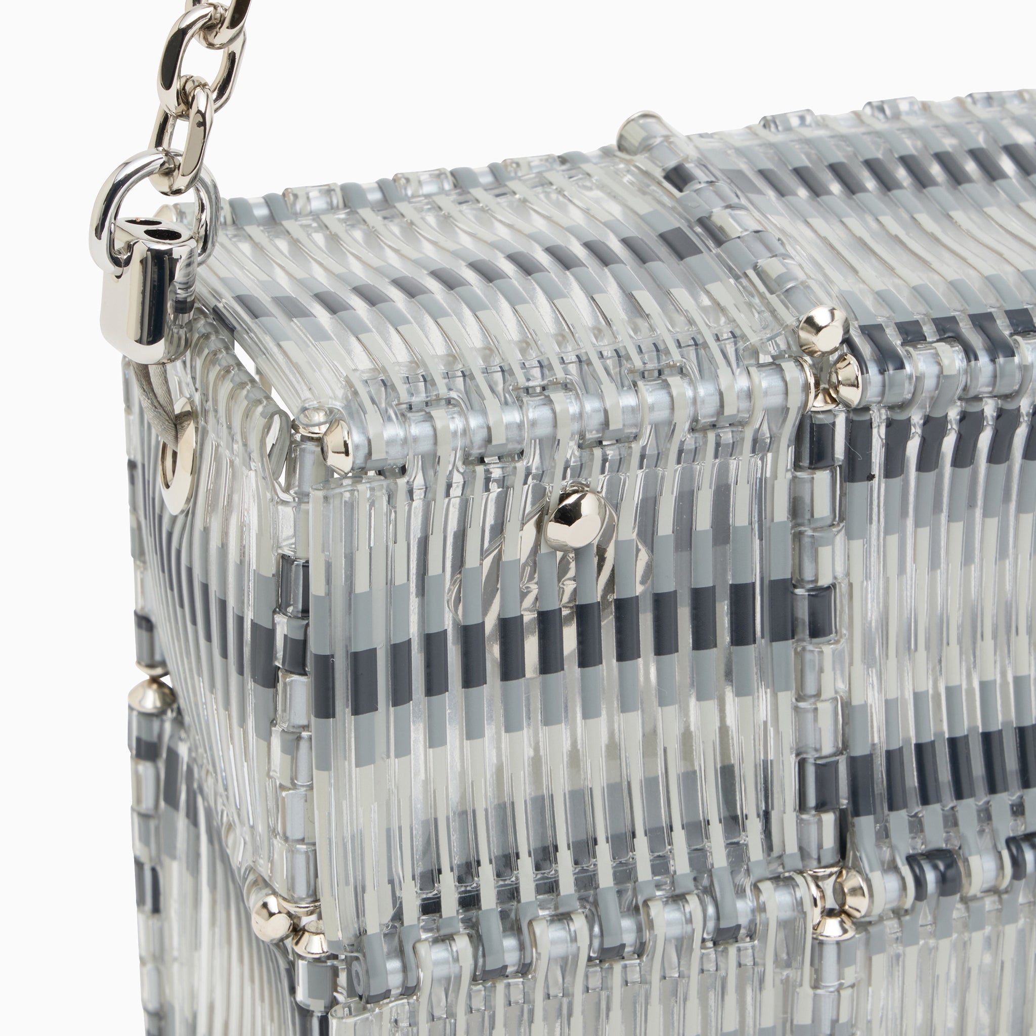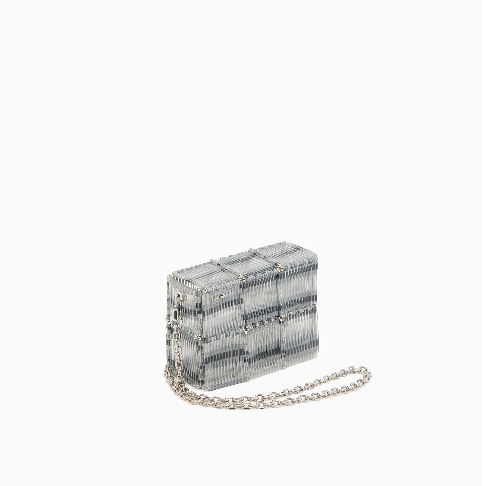 トーナルバージョンをクリーンな印象の〈CUBES〉に落とし込み、凹凸ある質感や幾何学構造、モアレ、同系色の穏やかなカラーが静かで洗練された表情を演出。シルクスクリーンとグラデーションが奥行きとリズムを生み、立体構造やチェーンハンドルが機能性とトレンドを兼ね備えた一品に。